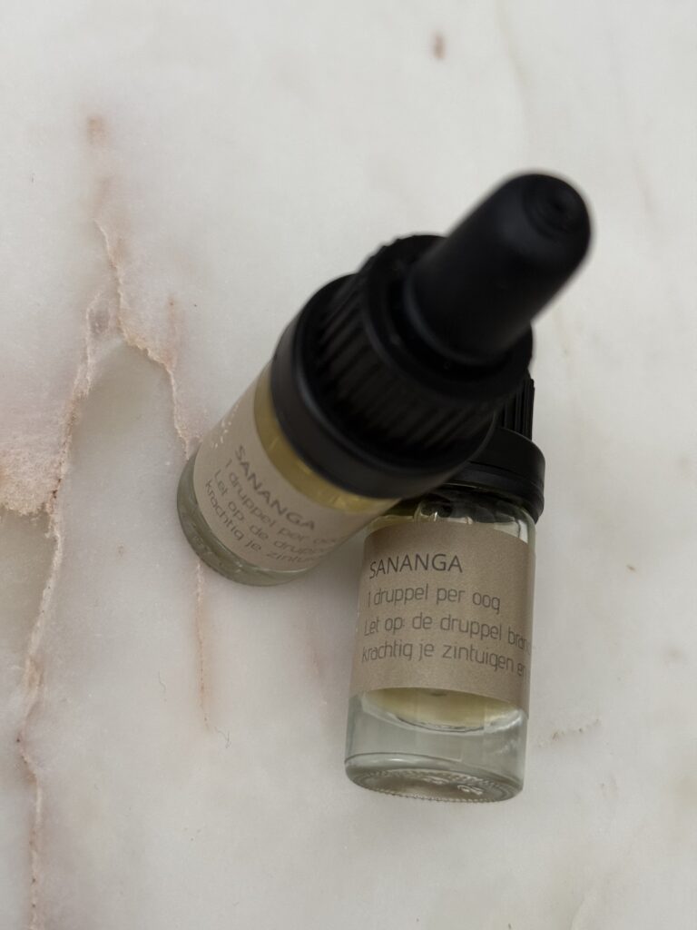 Sananga is een traditioneel plantmedicijn uit de Amazone, al generaties lang gebruikt door inheemse stammen als rituele reset. Het wordt toegediend als oogdruppels. De ervaring is intens en kort daarna beschrijven veel mensen een gevoel van helderheid en scherpere waarneming.